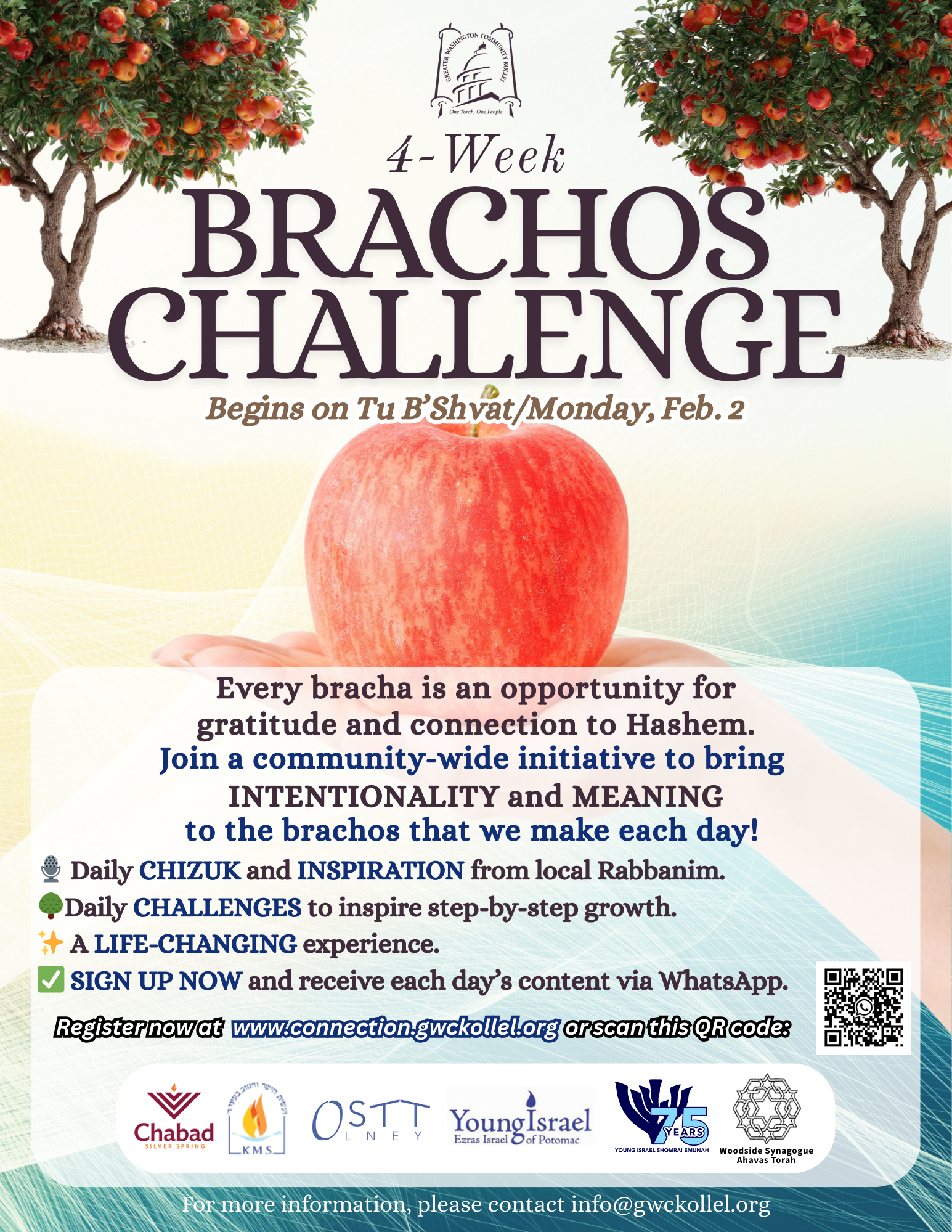 Every bracha is an opportunity for gratitude and connection to Hashem. Join a community-wide initiative to bring INTENTIONALITY and MEANING to the brachos that we make every day!