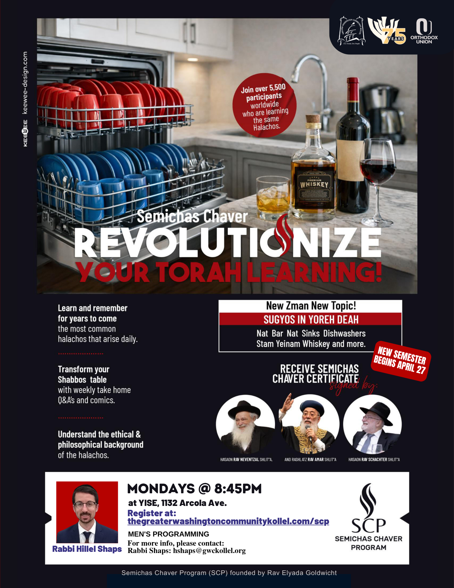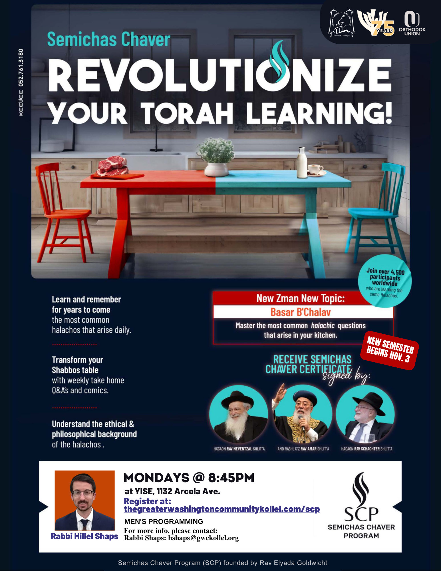 For more information please contact Rabbi Hillel Shaps: hshaps@gwckollel.org